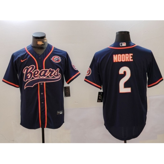 >Men's Chicago Bears #2 DJ Moore Navy Throwback With Cool Base Stitched Baseball Jersey