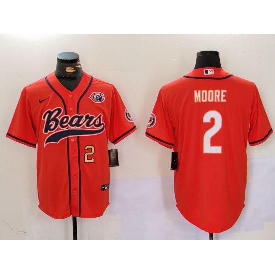 Men's Chicago Bears #2 DJ Moore Orange Throwback With Cool Base Stitched Baseball Jerseys