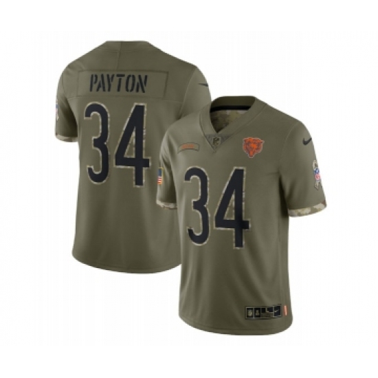 Men's Chicago Bears #34 Walter Payton 2022 Olive Salute To Service Limited Stitched Jersey