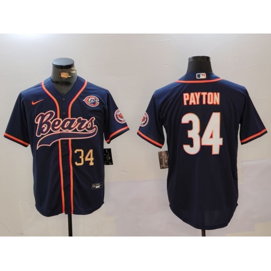 Men's Chicago Bears #34 Walter Payton Navy Throwback With Cool Base Stitched Baseball Jerseys