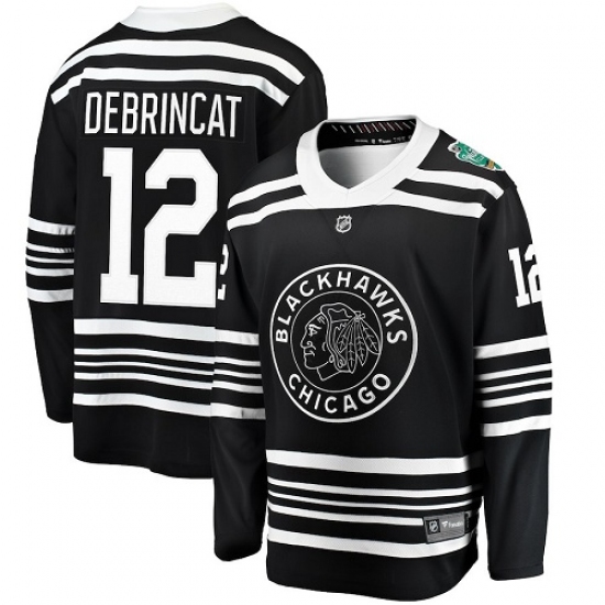 >Men's Chicago Blackhawks #12 Alex DeBrincat Black 2019 Winter Classic Fanatics Branded Breakaway NHL Jersey