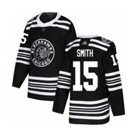 Men's Chicago Blackhawks #15 Zack Smith Authentic Black 2019 Winter Classic Hockey Jersey