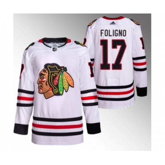 >Men's Chicago Blackhawks #17 Nick Foligno White Stitched Hockey Jersey