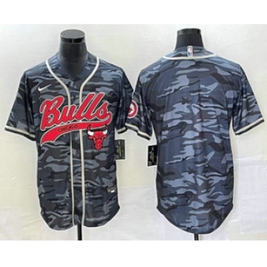 Men's Chicago Bulls Blank Black Camo Cool Base Stitched Baseball Jersey