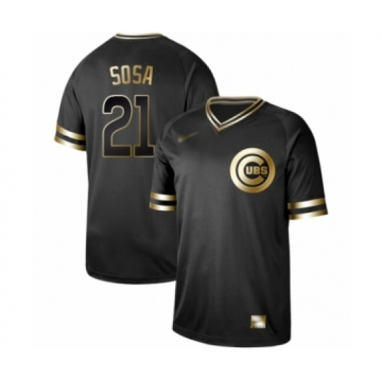 Men's Chicago Cubs #21 Sammy Sosa Authentic Black Gold Fashion Baseball Jersey