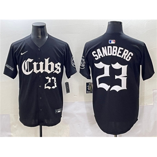 Men's Chicago Cubs #23 Ryne Sandberg Black 'Gothic North Side Edition' Vapor Premier Limited Stitched Baseball Jersey