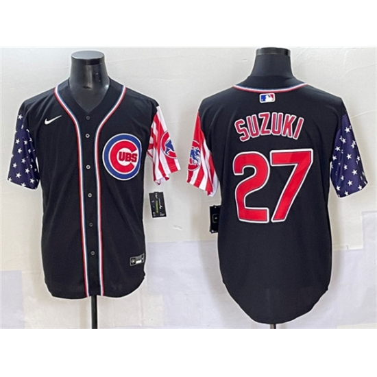 Men's Chicago Cubs #27 Seiya Suzuki Black 2025 Independence Day Vapor Premier Limited Stitched Baseball Jersey