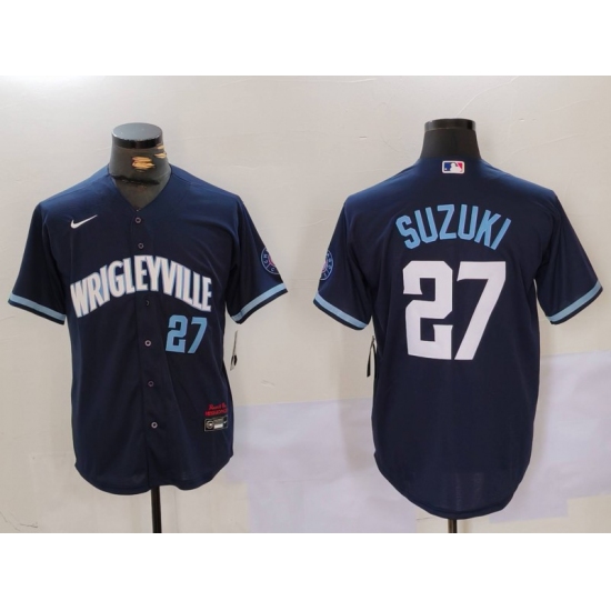 Men's Chicago Cubs #27 Seiya Suzuki Number Navy City Connect Cool Base Stitched Jersey