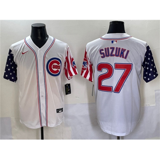 Men's Chicago Cubs #27 Seiya Suzuki White 2025 Independence Day Vapor Premier Limited Stitched Baseball Jersey