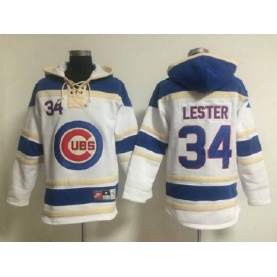 >Men's Chicago Cubs #34 Jon Lester White Hoodie