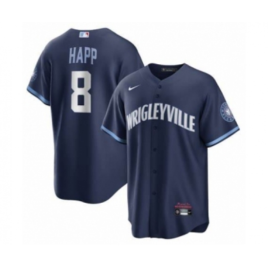 >Men's Chicago Cubs #8 Ian Happ Nike City Connect Replica Player Navy Jersey