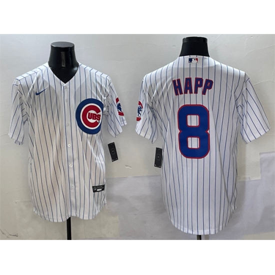 >Men's Chicago Cubs #8 Ian Happ White Cool Base Stitched Baseball Jersey