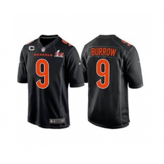 Men's Cincinnati Bengals #9 Joe Burrow 2022 Black With C Patch Super Bowl LVI Game Stitched Jersey