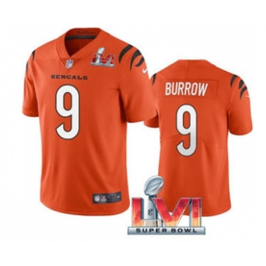 Men's Cincinnati Bengals #9 Joe Burrow Orange 2022 Super Bowl LVI Vapor Limited Stitched Jersey