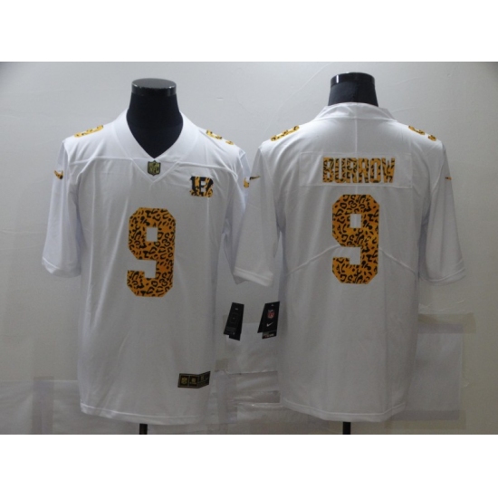 >Men's Cincinnati Bengals #9 Joe Burrow White Nike Leopard Print Limited Jersey