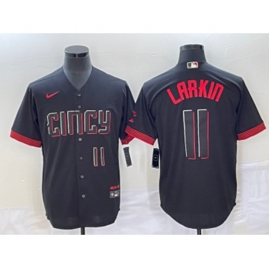 Men's Cincinnati Reds #11 Barry Larkin Number Black 2023 City Connect Cool Base Stitched Jersey1