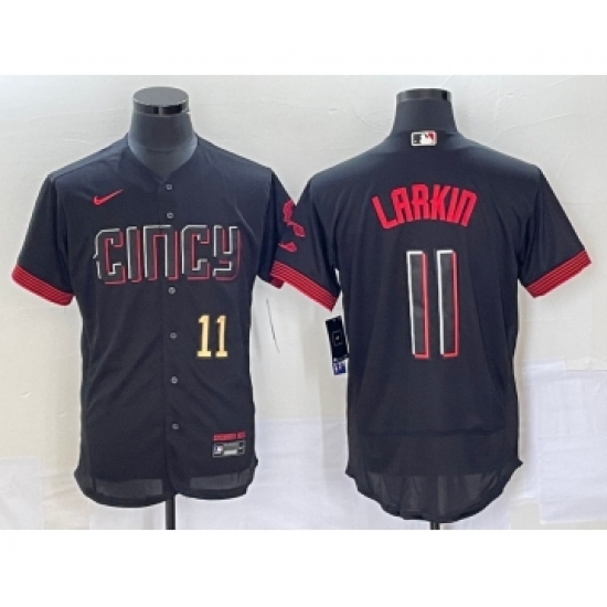 >Men's Cincinnati Reds #11 Barry Larkin Number Black 2023 City Connect Flex Base Stitched Jersey 1