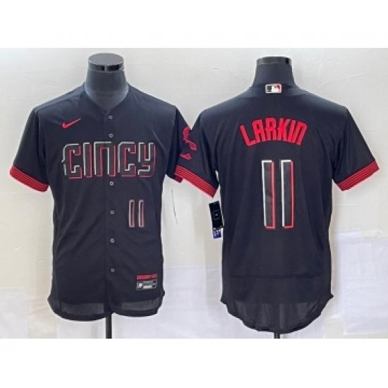 Men's Cincinnati Reds #11 Barry Larkin Number Black 2023 City Connect Flex Base Stitched Jersey