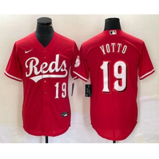 >Men's Cincinnati Reds #19 Joey Votto Number Red Cool Base Stitched Baseball Jersey