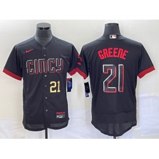 Men's Cincinnati Reds #21 Hunter Greene Number Black 2023 City Connect Flex Base Stitched Jersey 1 -