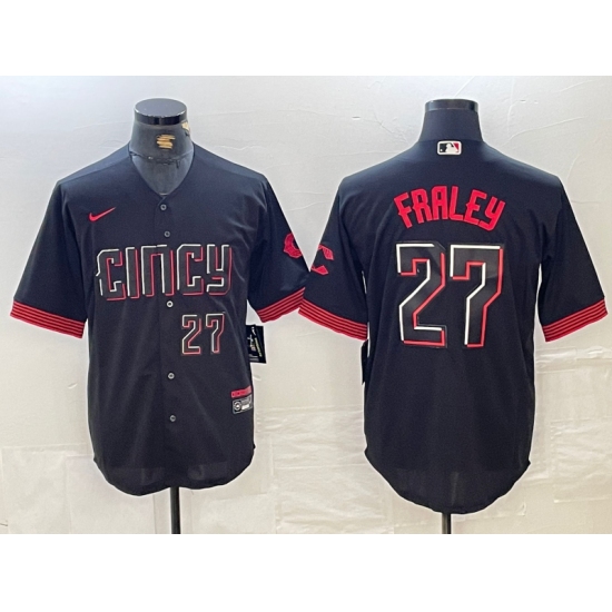 Men's Cincinnati Reds #27 Jake Fraley Number Black 2023 City Connect Cool Base Stitched Jersey