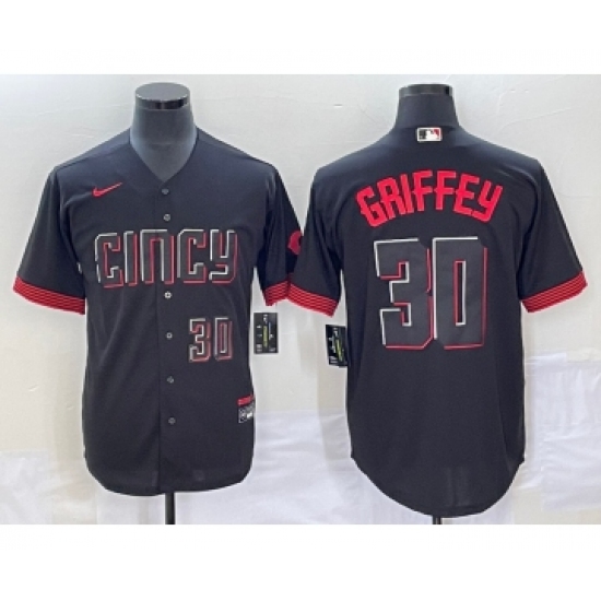 Men's Cincinnati Reds #30 Ken Griffey Jr Black 2023 City Connect Cool Base Stitched Jersey