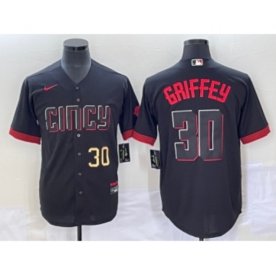 Men's Cincinnati Reds #30 Ken Griffey Jr Black 2023 City Connect Cool Base Stitched Jersey1