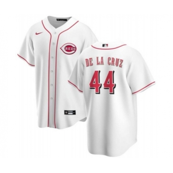 >Men's Cincinnati Reds #44 Elly De La Cruz White Cool Base Stitched Baseball Jersey
