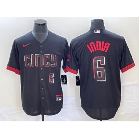 Men's Cincinnati Reds #6 Jonathan India Number Black 2023 City Connect Stitched Jersey2