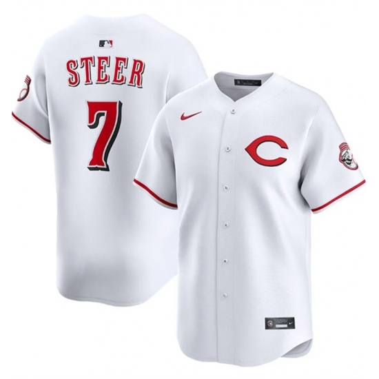 Men's Cincinnati Reds #7 Spencer Steer White 2025 Home Limited Stitched Baseball Jersey