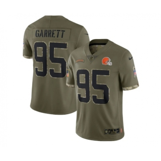 Men's Cleveland Browns #95 Myles Garrett 2022 Olive Salute To Service Limited Stitched Jersey