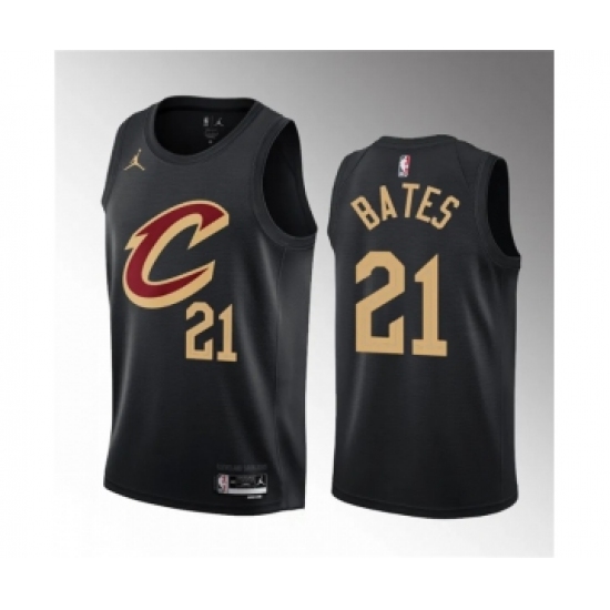 >Men's Cleveland Cavaliers #21 Emoni Bates Black 2023 Draft Statement Edition Stitched Jersey