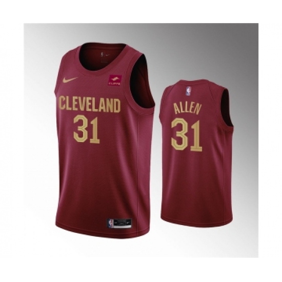 >Men's Cleveland Cavaliers #31 Jarrett Allen Wine Icon Edition Stitched Basketball Jersey