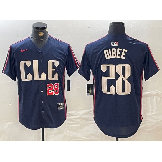 >Men's Cleveland Guardians #28 Tanner Bibee Number Navy 2024 City Connect Limited Stitched Jersey