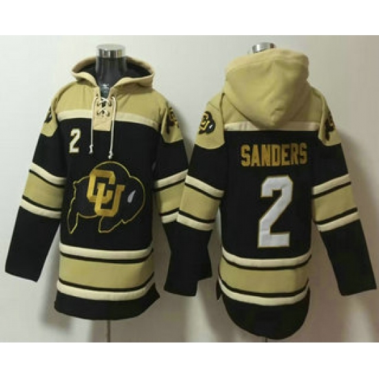 >Men's Colorado Buffaloes #2 Shedeur Sanders Black Ageless Must Have Lace Up Pullover Hoodie