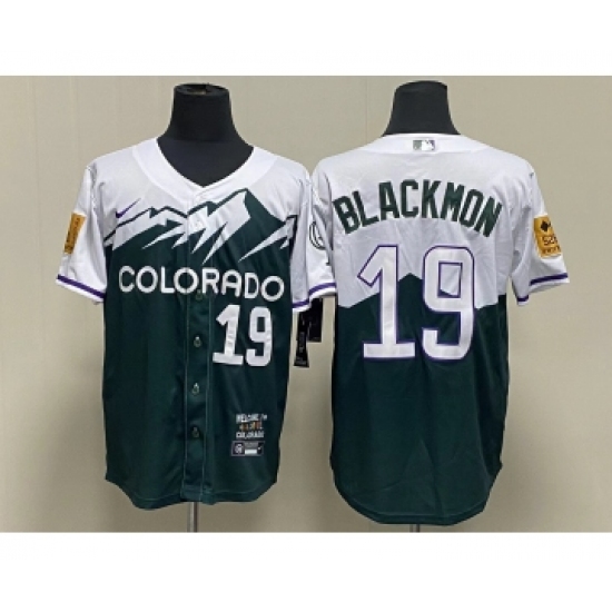 Men's Colorado Rockies #19 Charlie Blackmon Green 2022 City Connect Cool Base Stitched Jersey