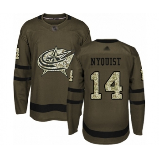 >Men's Columbus Blue Jackets #14 Gustav Nyquist Authentic Green Salute to Service Hockey Jersey