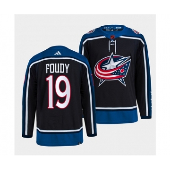 >Men's Columbus Blue Jackets #19 Liam Foudy Navy 2022 Reverse Retro Stitched Jersey