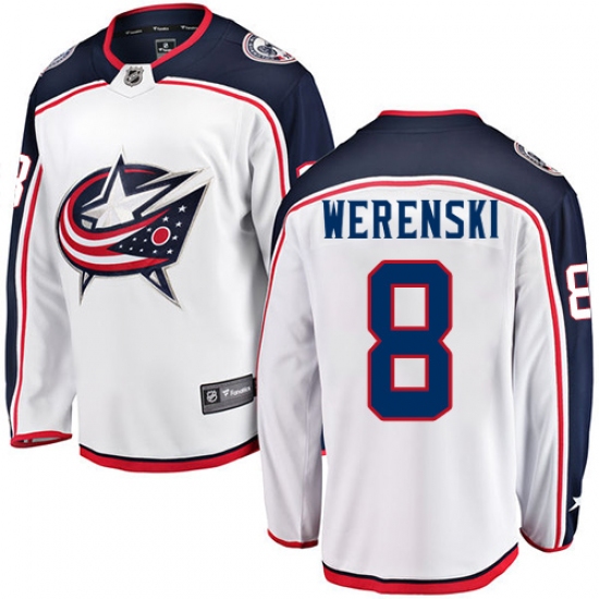 Home>NHL>Columbus Blue Jackets>Zach Werenski>Men's Columbus Blue Jackets #8 Zach Werenski Fanatics Branded White Away Breakaway NHL Jersey