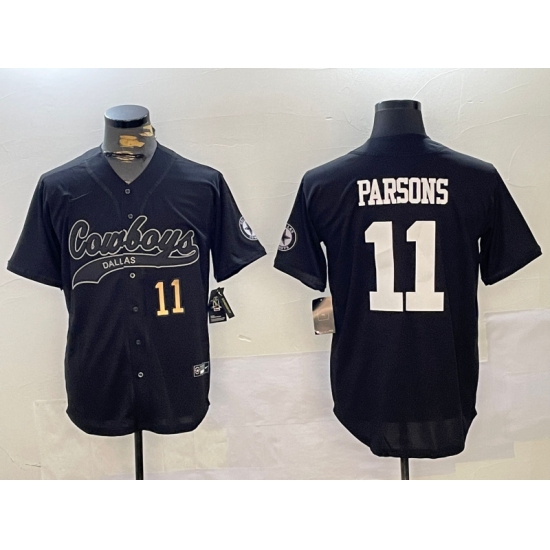 Men's Dallas Cowboys #11 Micah Parsons Black With Cool Base Stitched Baseball Jerseys