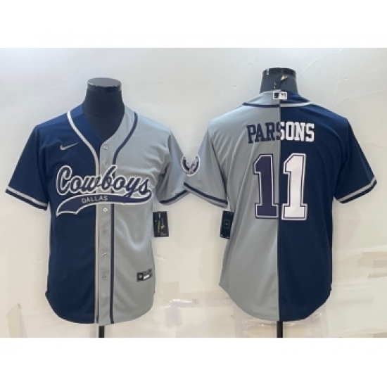 >Men's Dallas Cowboys #11 Micah Parsons Navy Blue Grey Two Tone With Patch Cool Base Stitched Baseball Jersey