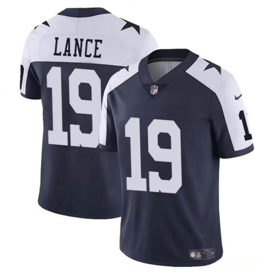 >Men's Dallas Cowboys #19 Trey Lance Navy White Thanksgiving Vapor Untouchable Limited Football Stitched Jersey