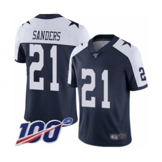 Men's Dallas Cowboys #21 Deion Sanders Navy Blue Throwback Alternate Vapor Untouchable Limited Player 100th Season Football Jersey