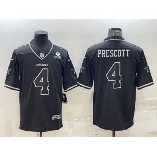 >Men's Dallas Cowboys #4 Dak Prescott Black With 1960 Patch Limited Stitched Football Jersey