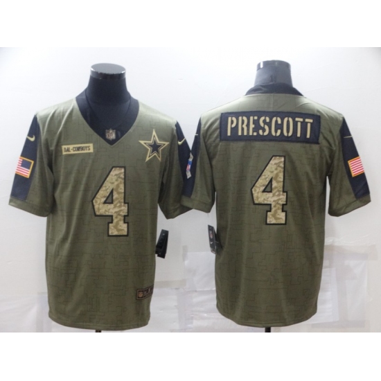 Men's Dallas Cowboys #4 Dak Prescott Nike Olive 2021 Salute To Service Limited Player Jersey