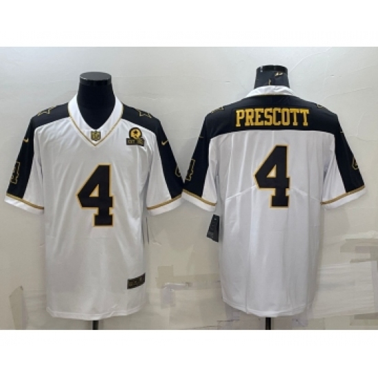 Men's Dallas Cowboys #4 Dak Prescott White Gold Edition With 1960 Patch Limited Stitched Football Jersey