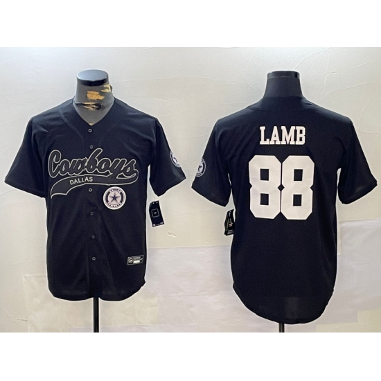 >Men's Dallas Cowboys #88 CeeDee Lamb Black With Cool Base Stitched Baseball Jersey