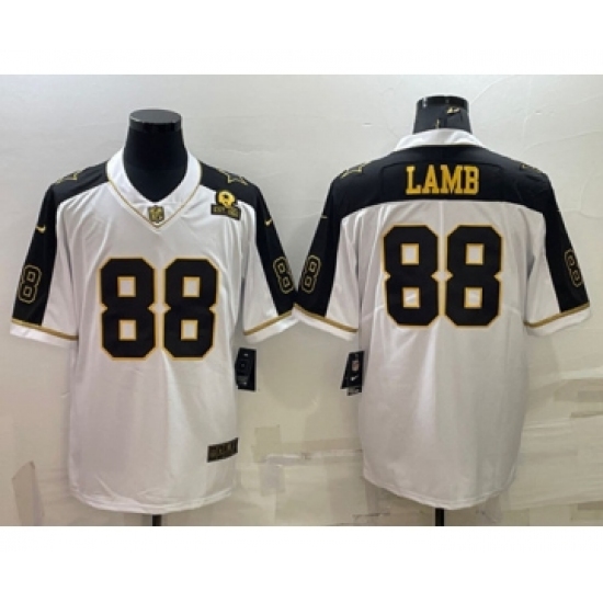 Men's Dallas Cowboys #88 CeeDee Lamb White Gold Edition With 1960 Patch Limited Stitched Football Jersey