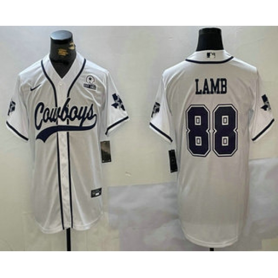 >Men's Dallas Cowboys #88 CeeDee Lamb White With 1960 Cool Base Stitched Baseball Jersey