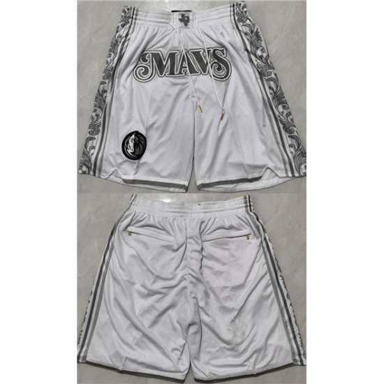 Mens Dallas Mavericks White Shorts (Run Small)